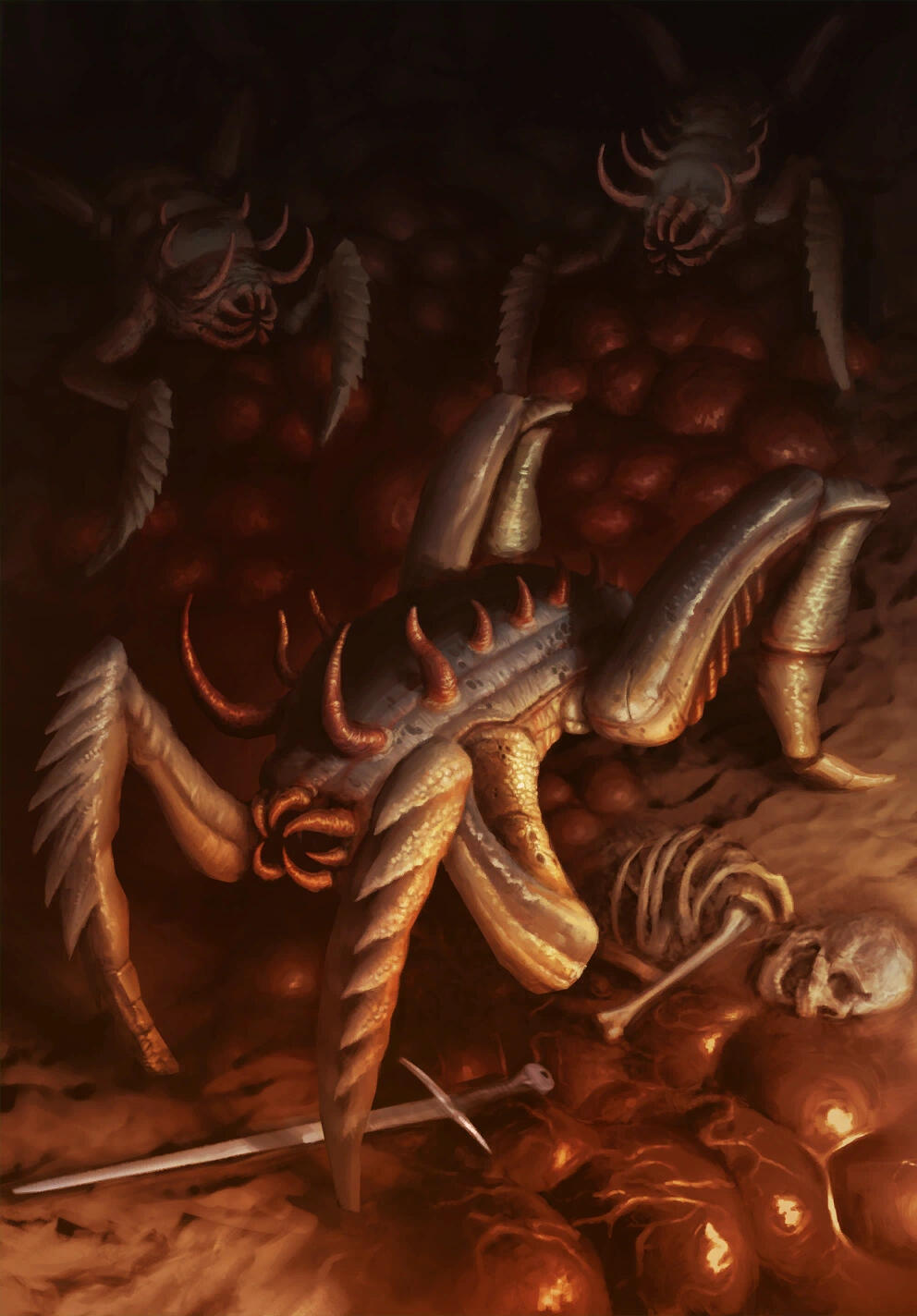 Unas fuertes pinzas, una boca llena de dientes como cuchillas y glándulas venenosas llenas de toxinas mortales constituyen el mortífero arsenal de las arachas. Como las personas y los animales de granja constituyen una parte importante de la dieta de estas criaturas, no es de extrañar que los contratos por arachas sean una fuente importante de dinero.Los arácnidos son cazadores solitarios que aguardan pacientemente hasta que sus presas se acercan para matarlas con un ataque fugaz. Esto también se aplica a las arachas.