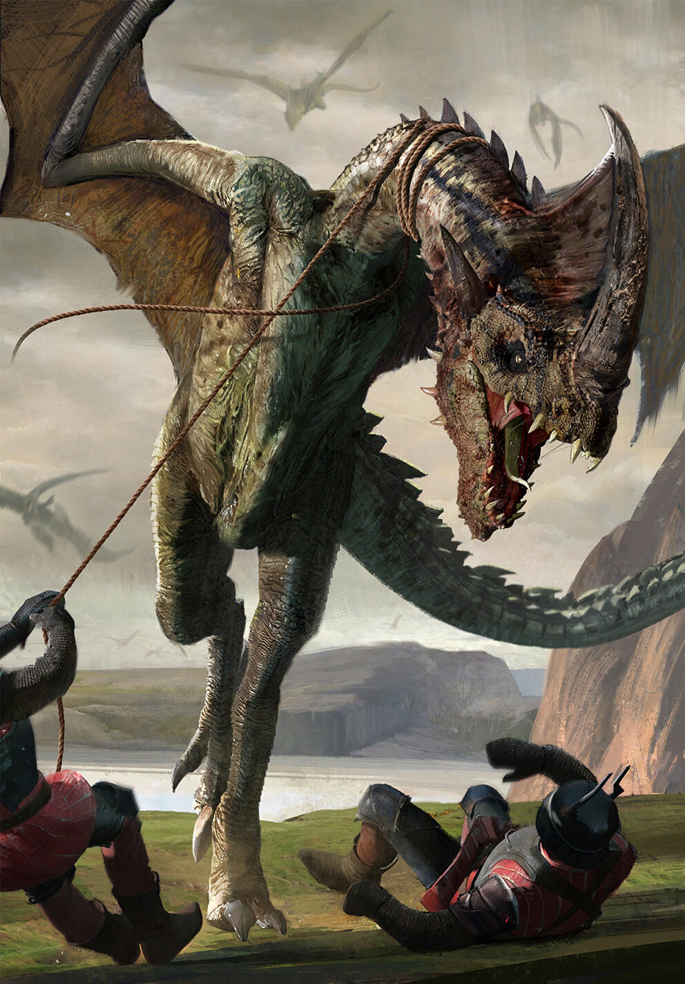 Los wyvernos tienen la desgracia de ser confundidos a menudo con dragones. Al ver a uno de estos reptiles aproximándose a un rebaño de ovejas, los campesinos son presa del pánico. Esperan que escupan fuego, que masacren a todos y que secuestren a las doncellas. Aunque es cierto que los wyvernos cazan ovejas, no es verdad que respiren fuego ni que arrasen aldeas enteras. Y las doncellas les dan lo mismo.Se suele confundir a los wyvernos con los dragones y, aunque son mucho más pequeños que sus famosos parientes y no escupen fuego, son igualmente peligrosos en extremo. Se teme especialmente a los llamados wyvernos reales que, como, sus monarcas homónimos, son especialmente irascibles y extremadamente mortales.